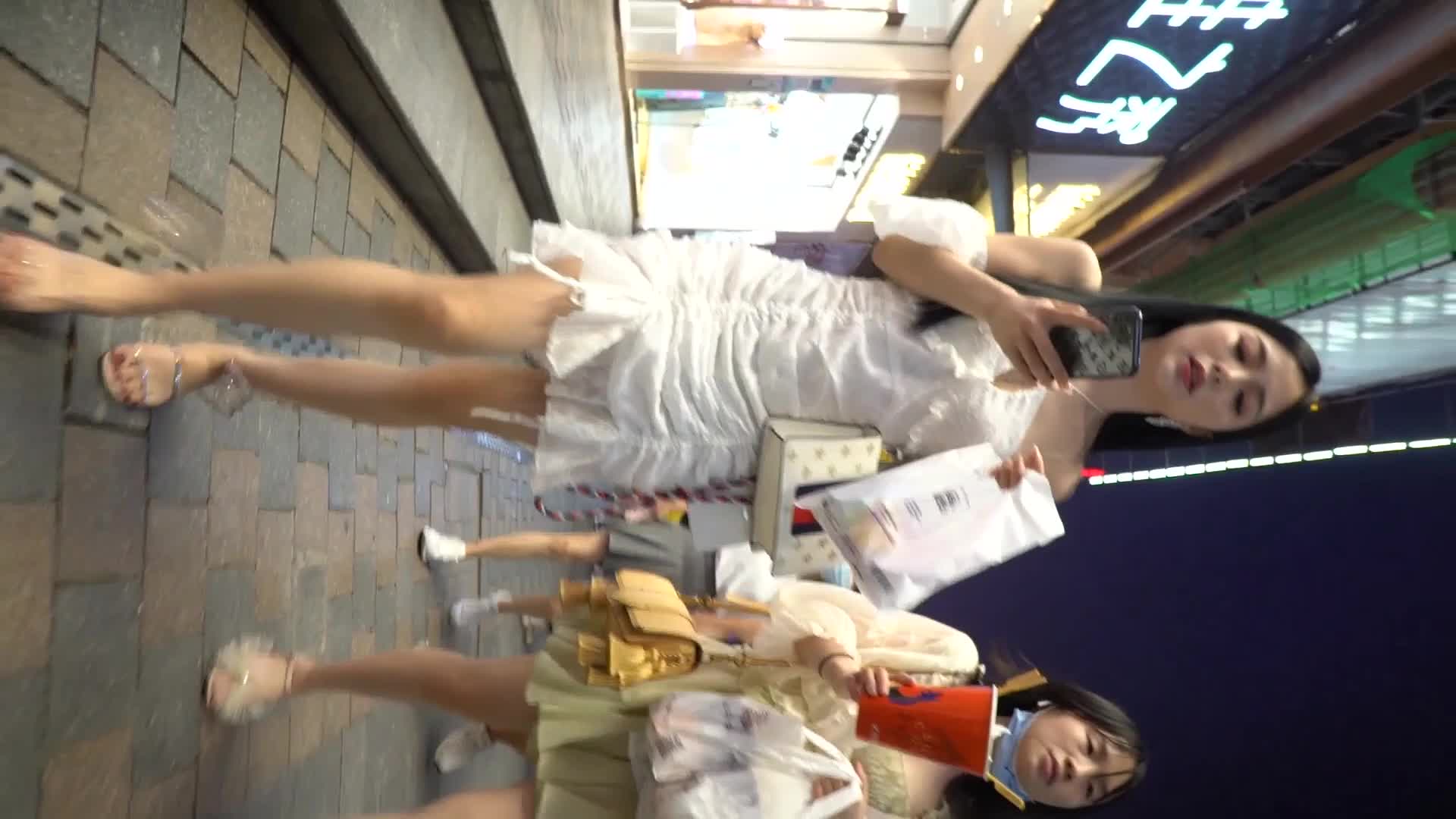 kcf9.com-步行街一路跟踪抄底白色连衣裙美女内裤前后透明